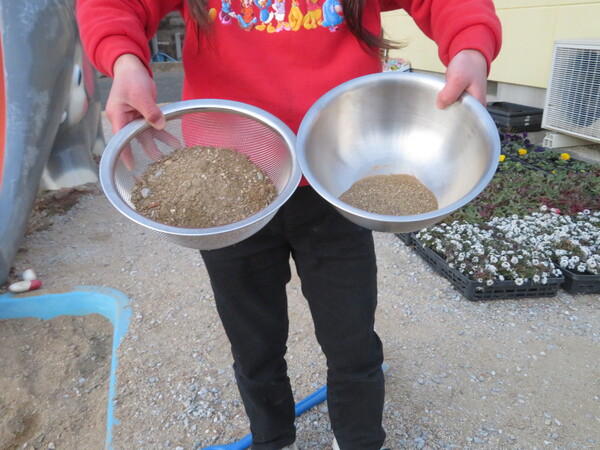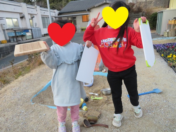 | 先日、砂場のおもちゃが増えました✨ まな板やお玉、ボウル、しゃもじなどなど🙌 早速新しいおもちゃを使って、 好きなアイドルの踊り⛄を真似したり、 ご飯屋さんごっこ🍴をしたりしました❕ |