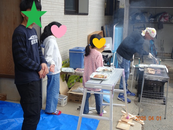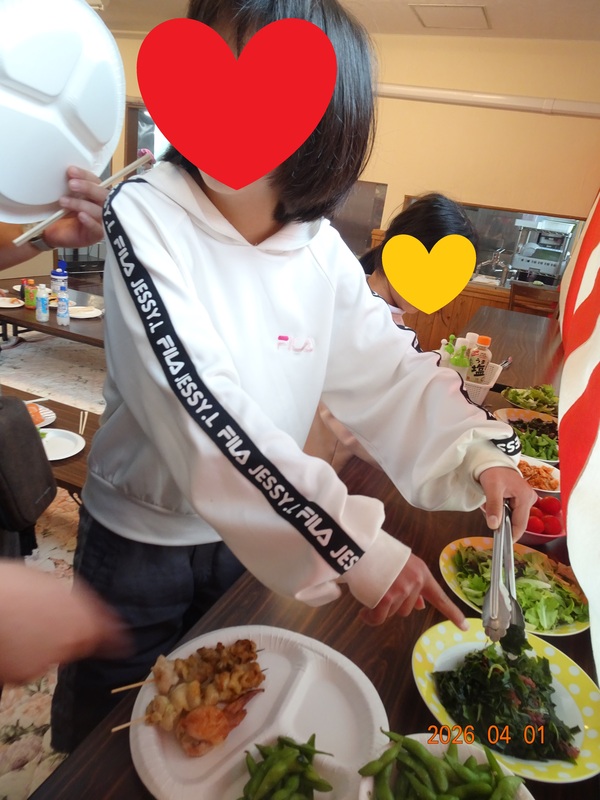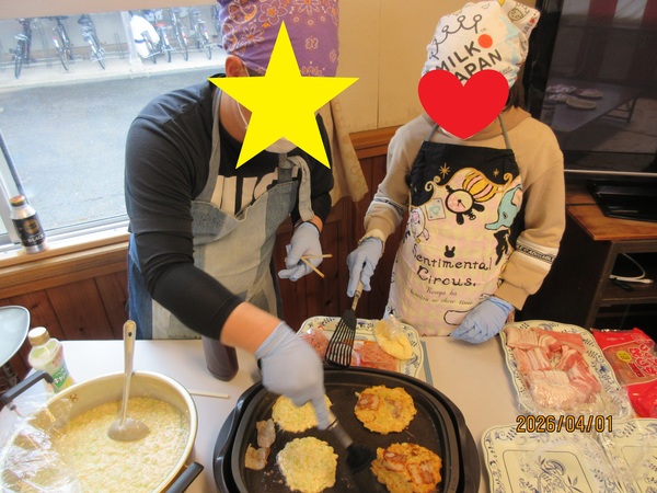 お好み焼きブースでは新中1の子がお手伝い👐