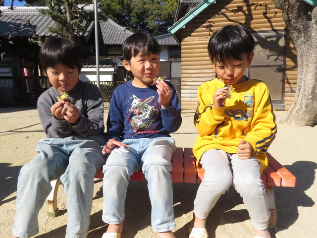 | 3歳未満児おやつ 自由保育/年齢別保育 (晴:園庭・お散歩など/雨:園舎内) |