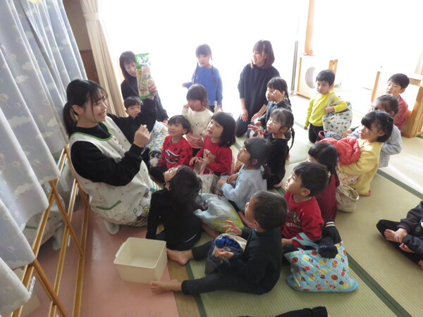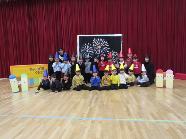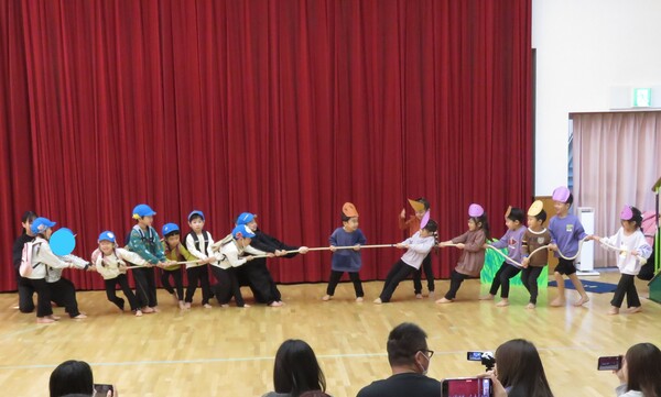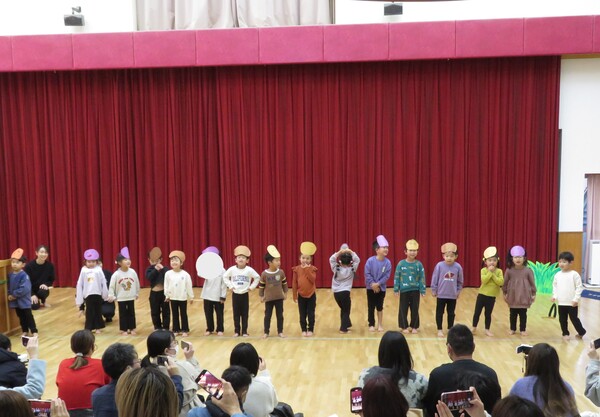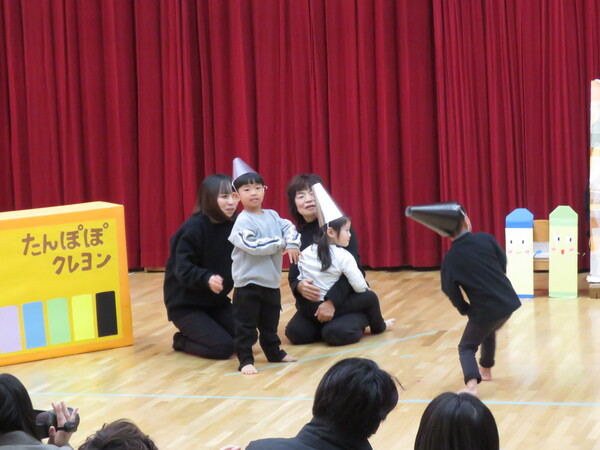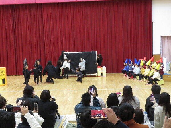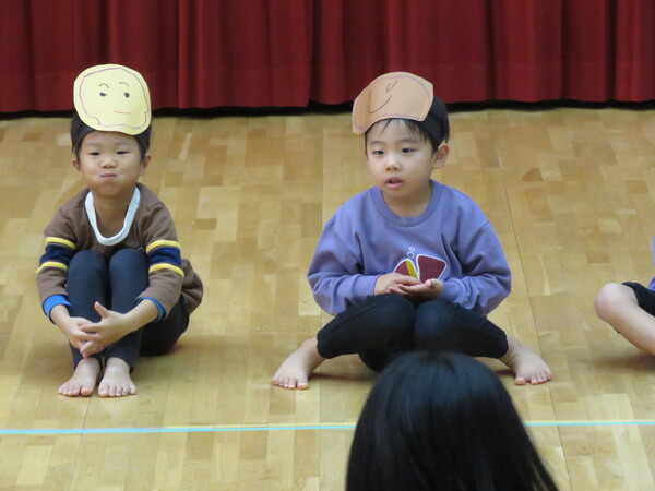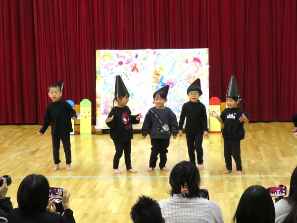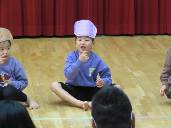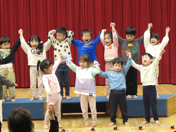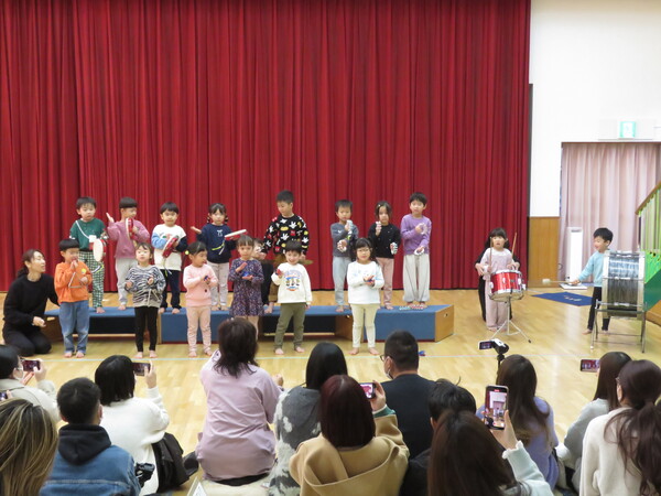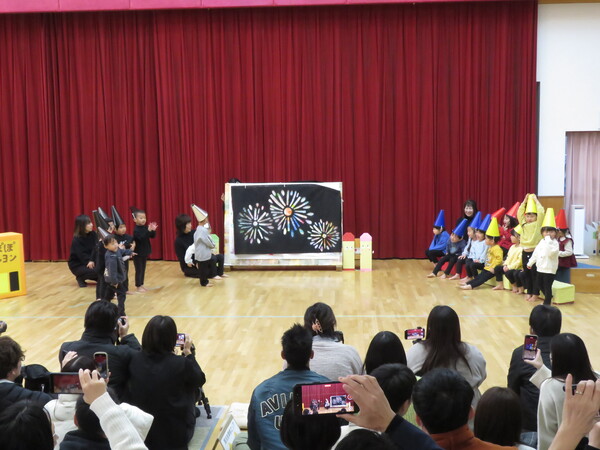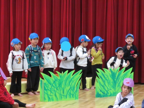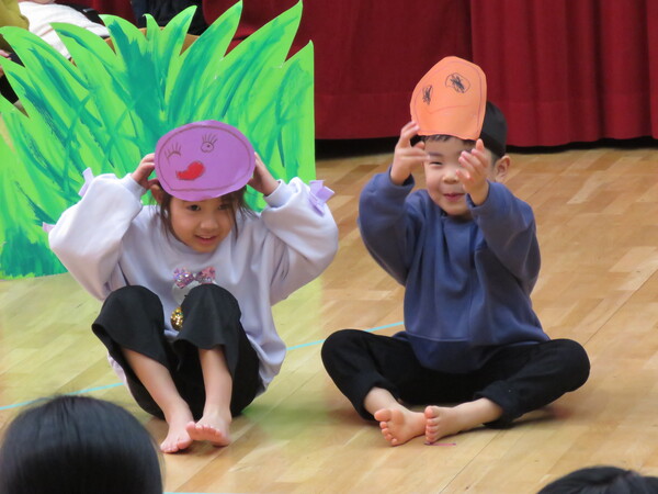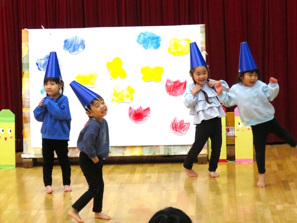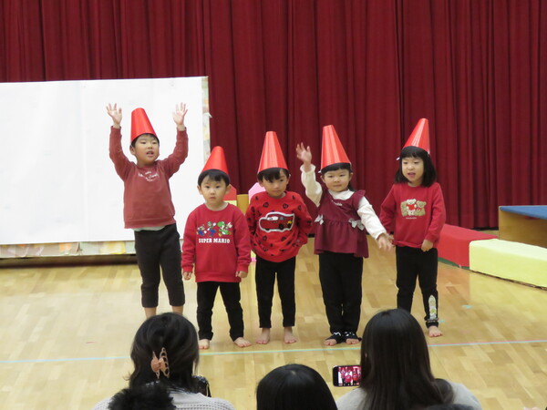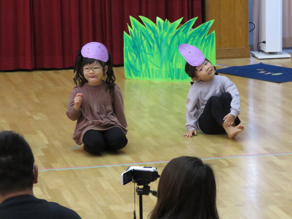 | ふじ組の発表会リハーサルの様子です。 さつき・たんぽぽ組の前で緊張する子、楽しんでる子、はりきっている子www 本番にむけて、がんばりました! |