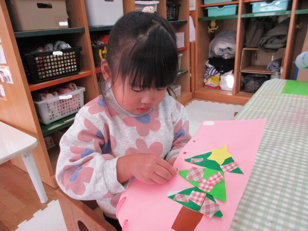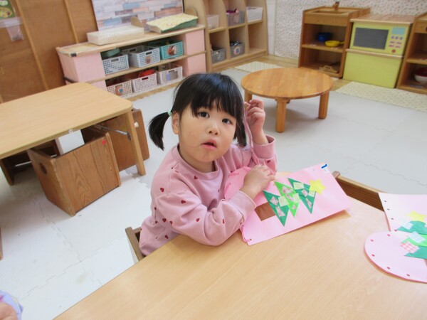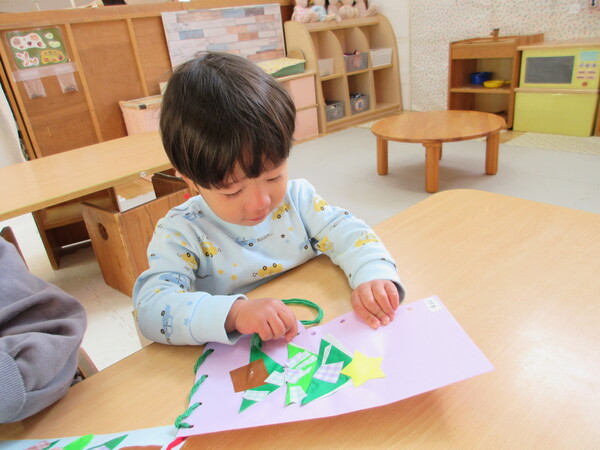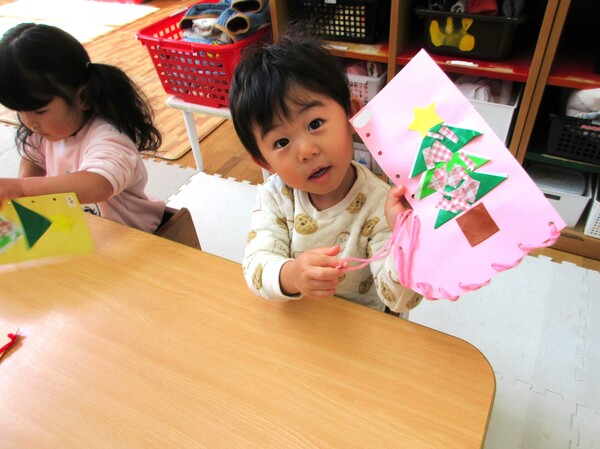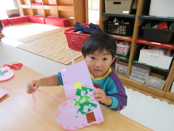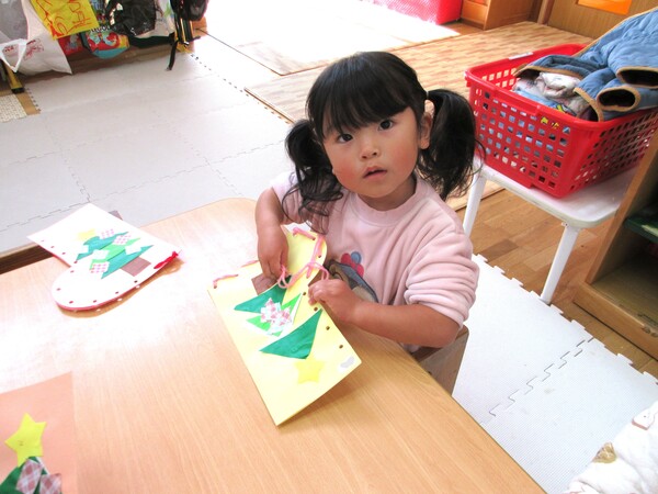 | 急に寒くなりました。 「冬」到来!12月といえば・・・ ということで、ちゅうりっぷ組さんが クリスマスブーツを作っていました。 サンタさん、いっぱいプレゼント届けてくれるかな? |