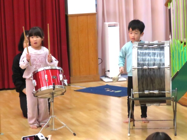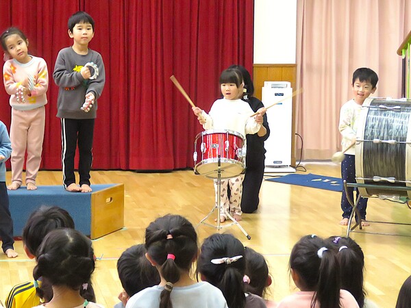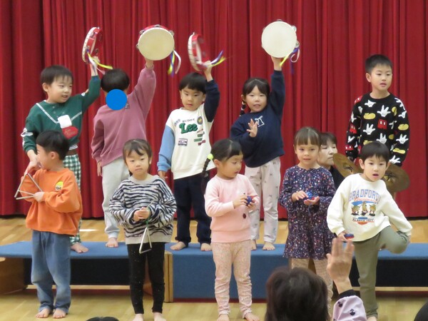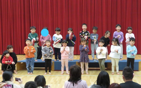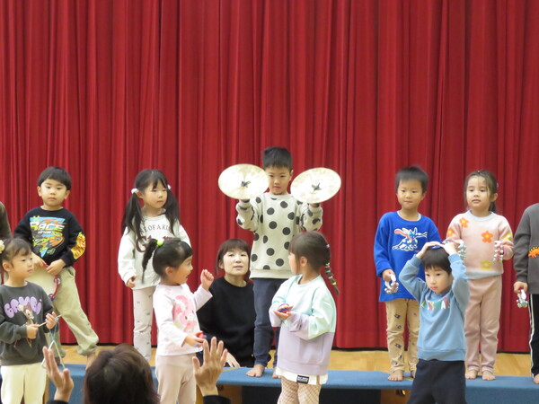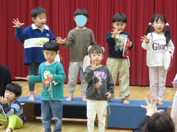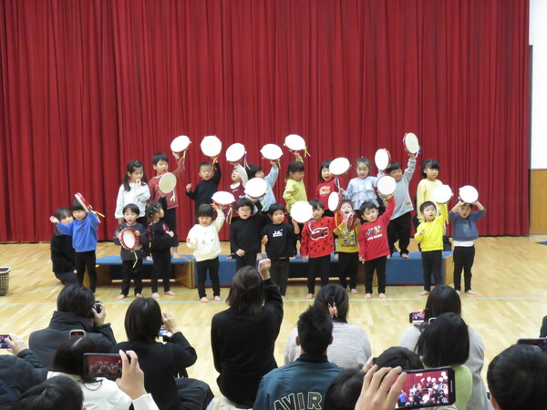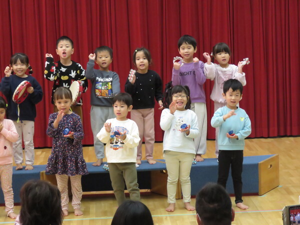 | たんぽぽ組&ふじ組のクラス発表会。 緊張とドキドキ、張り切って笑顔全開の子もいれば、泣けてしまう子、しり込みする子。 でも、みんなそれぞれ精一杯で歌い、演奏し、演じることができました。 保護者のみなさま、ご協力ありがとうございました。 たんぽぽ・ふじ組のみんな、とーっても素敵でした。 あらためて、拍手!拍手!拍手!です! |