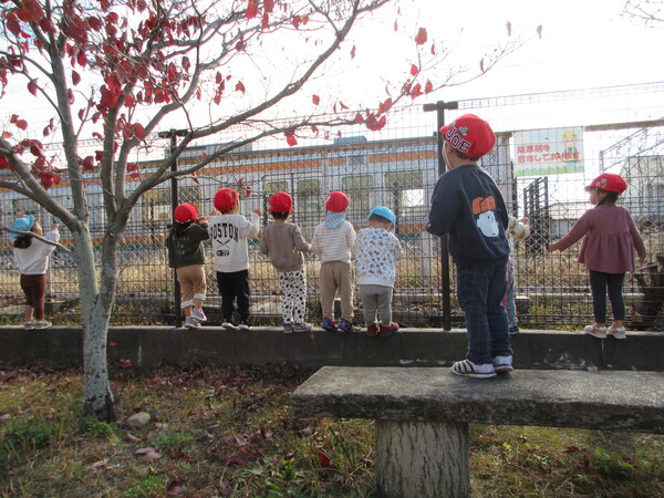 | ちゅうりっぷ組は牛久保駅まで電車を見に行きました。 電車を見送り、いってらっしゃ〜い! |
