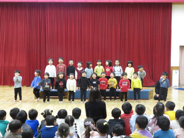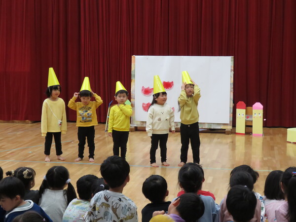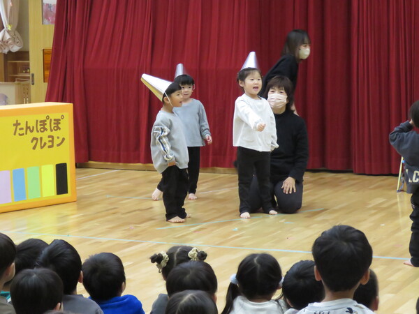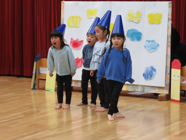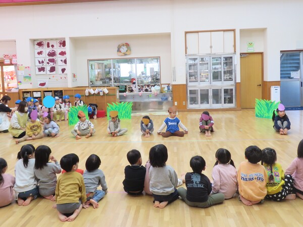 | たんぽぽ組 発表会のリハーサルです。 園のお友だちの前でプレ披露! |
