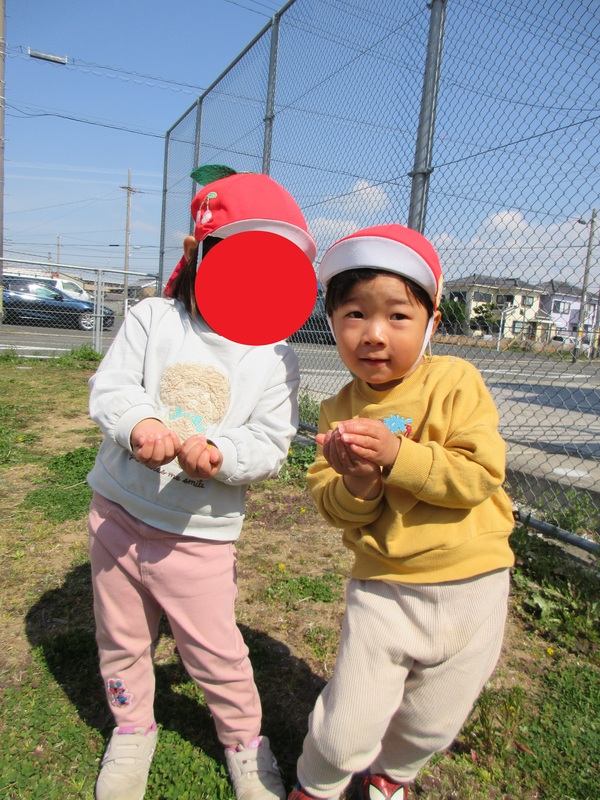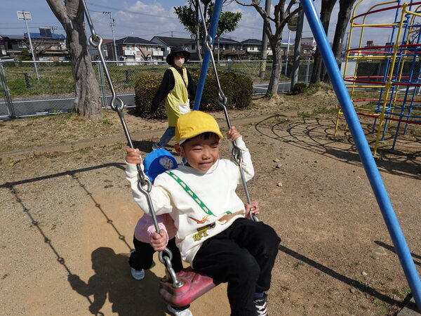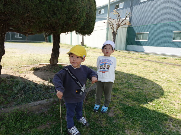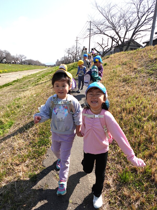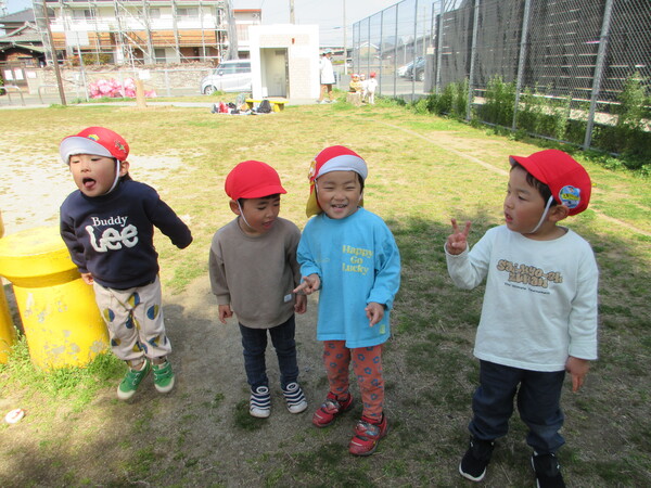 | 日中は暖かくなってきました。 ちゅうりっぷ組、松風公園へ春探しにおでかけです! |