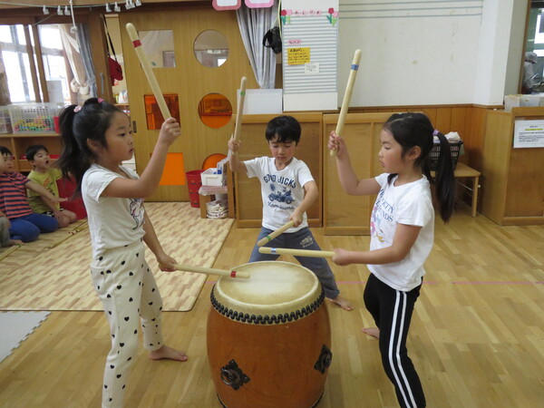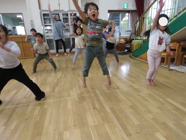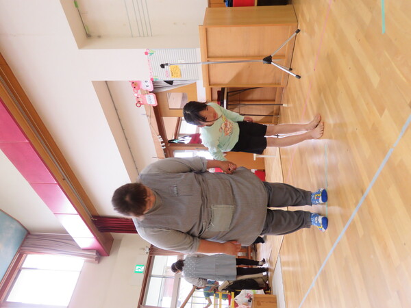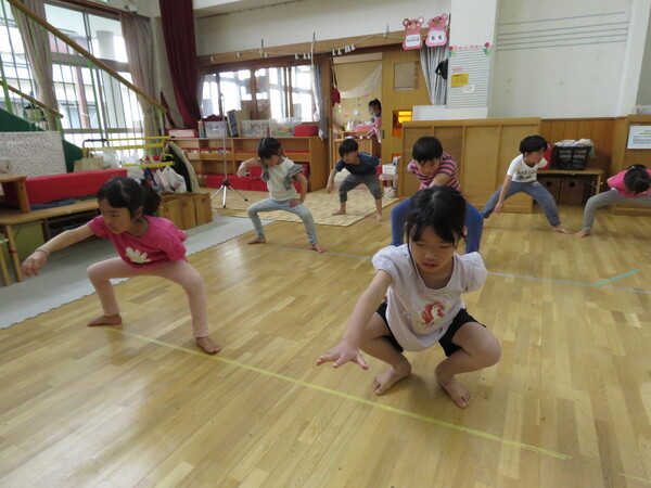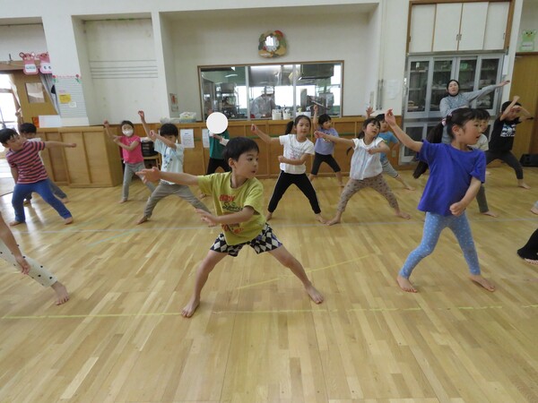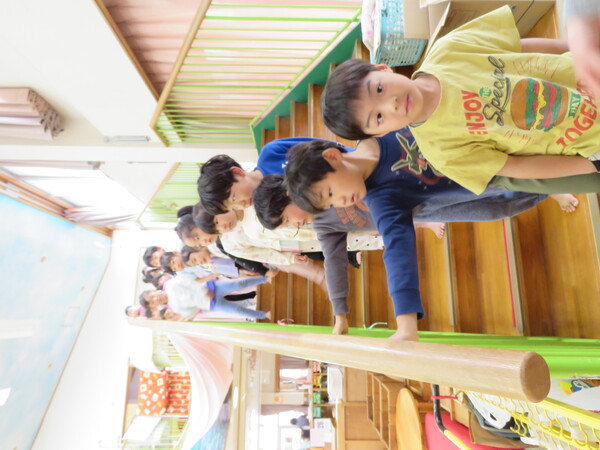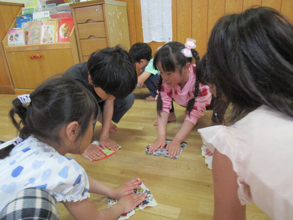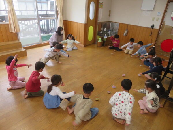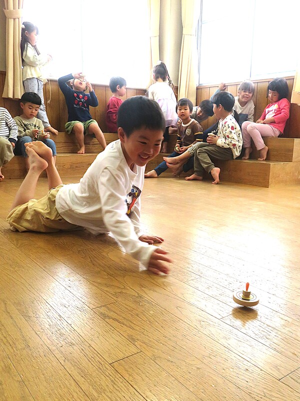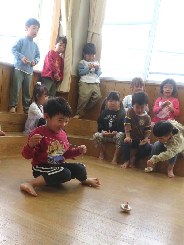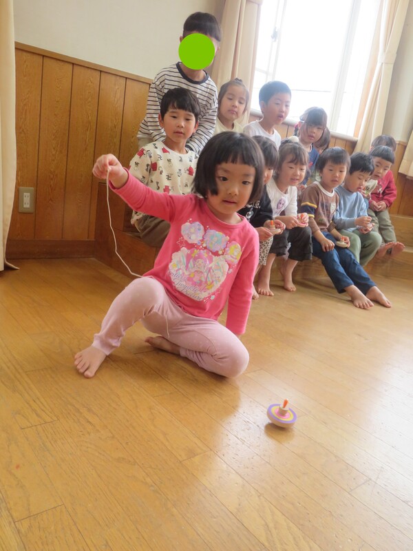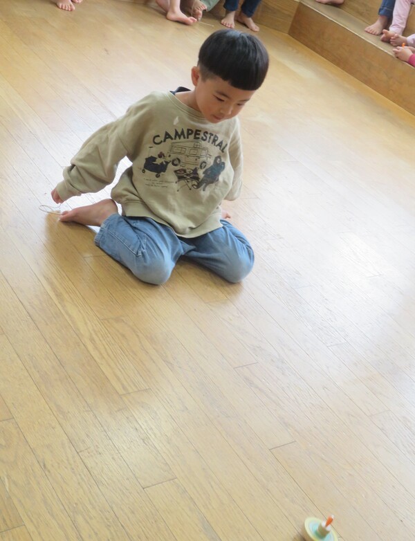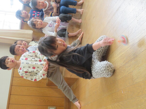 | さつきに続き、ふじ組も「コマ回し大会」を開催! トーナメント方式で技を競いました! |