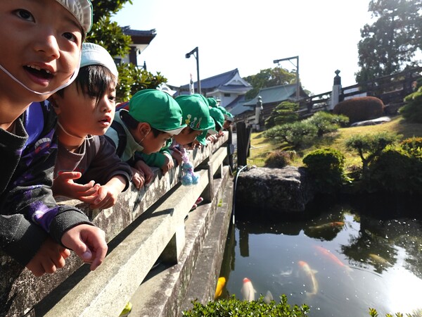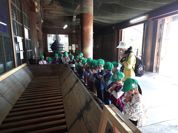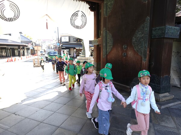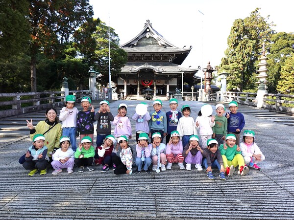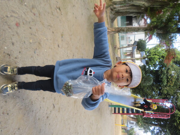 | 七五三のお詣りのため、豊川稲荷まででかけた さつき組。 おっきな本堂でお詣りしたあとは、どんぐり拾い・・・と、思っていたら 掃除の際に宮司さんがとっていてくださったのをたっぷりいただきましたw ありがとうございました! |