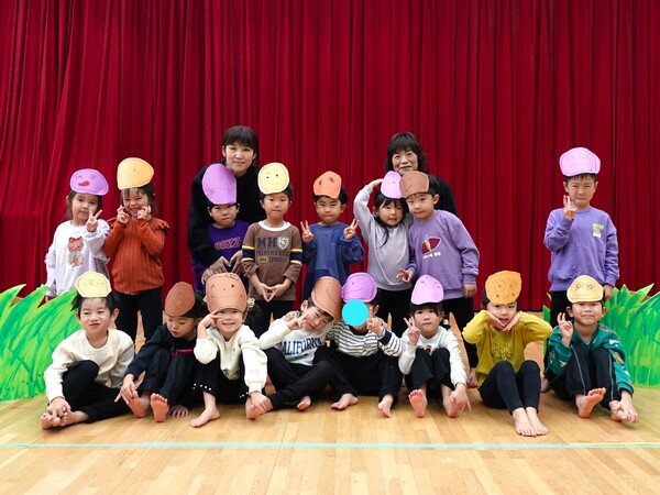 | 週末のクラス発表会にむけて練習を重ねる たんぽぽ&ふじ組。 明日はリハーサルです。さてさて、出来具合はいかがかな? |