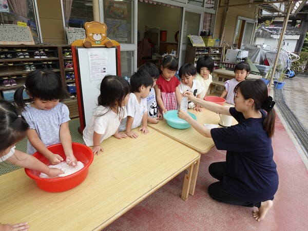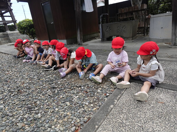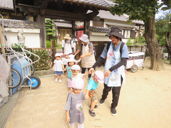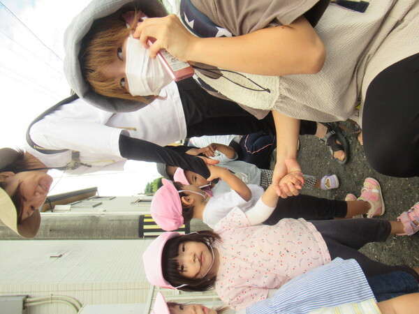 | 今日は、お散歩先でトラブルがあったときの訓練を兼ねて 全クラスがお出かけしました。 真夏日のような暑さ&訓練だったので、短めのお出かけでしたが やっぱりお出かけは楽しいね! |