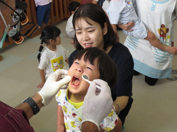 | 今日は、半年に一度の歯科・内科健診でした。 泣く子、逃げる子、嫌がる子・・・は、ほんの一握りwww 先生方、ありがとうございました! |