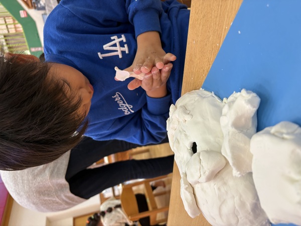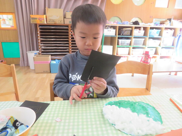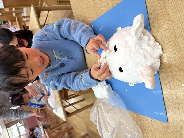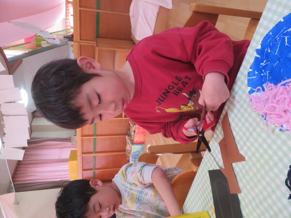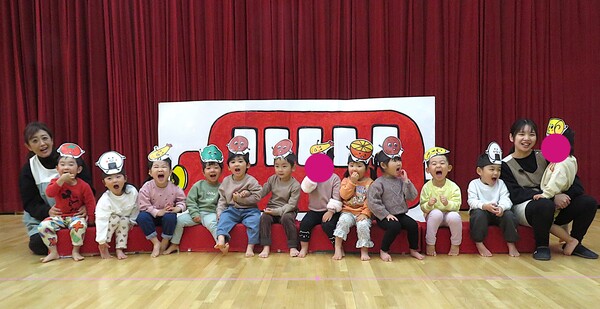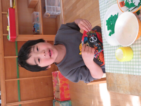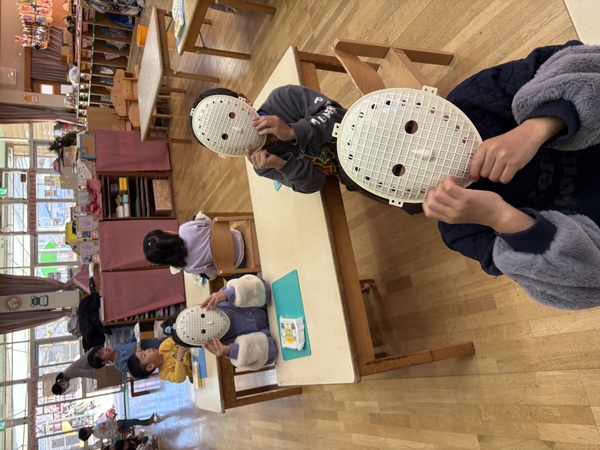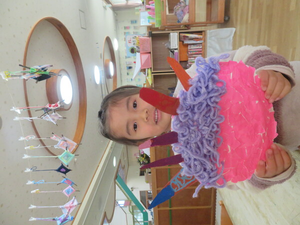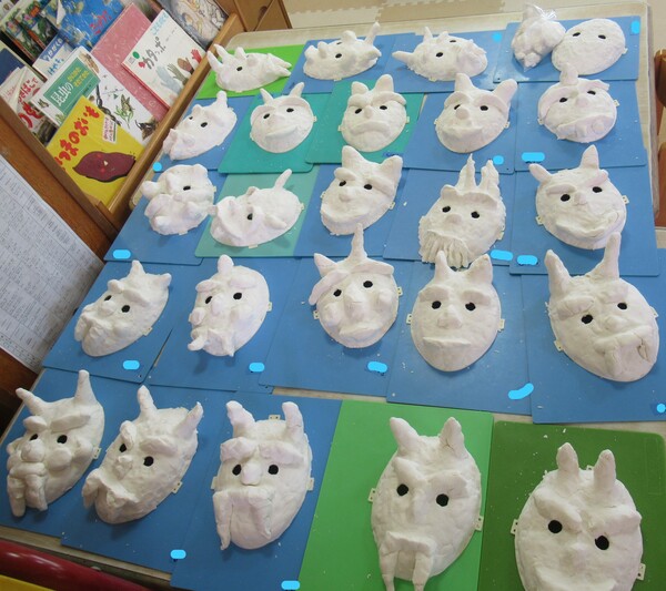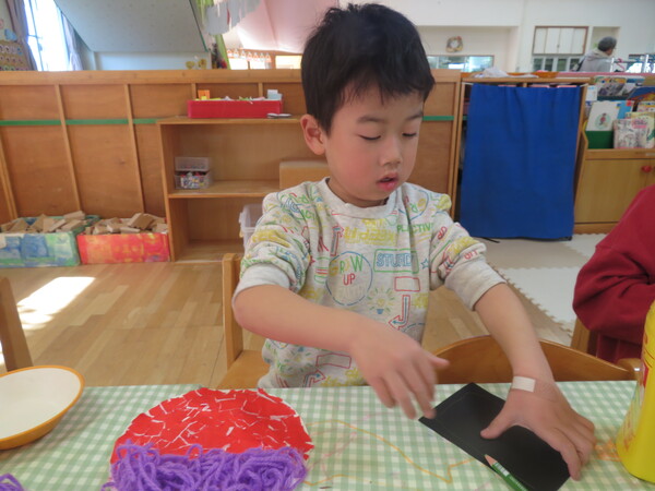 | 節分が近づいています。 さつき組も鬼面づくりを始めました |
