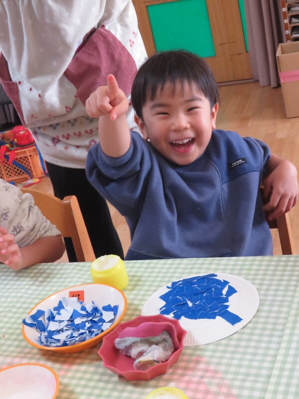 | 先日から ふじ組が紙皿をベースに鬼面づくりを始めています。 今年は はたまたどんな鬼さんができあがるのかなぁ |