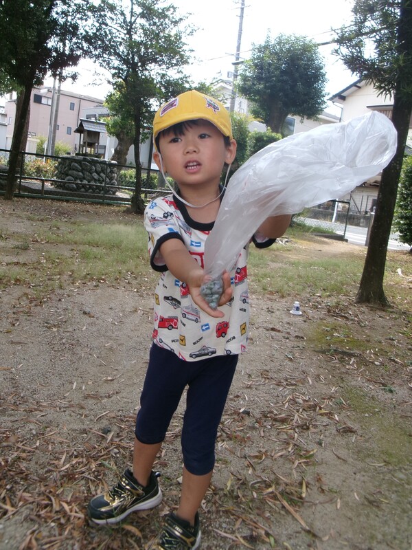 | ずいぶん過ごしやすい気候になりました。 たんぽぽ組、一本松公園へおでかけです。 少し早い秋探し。おもしろいの見つかったかな? |