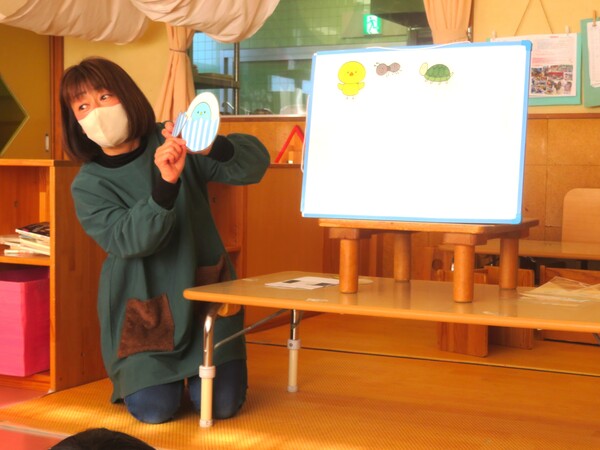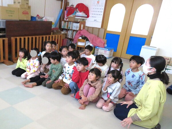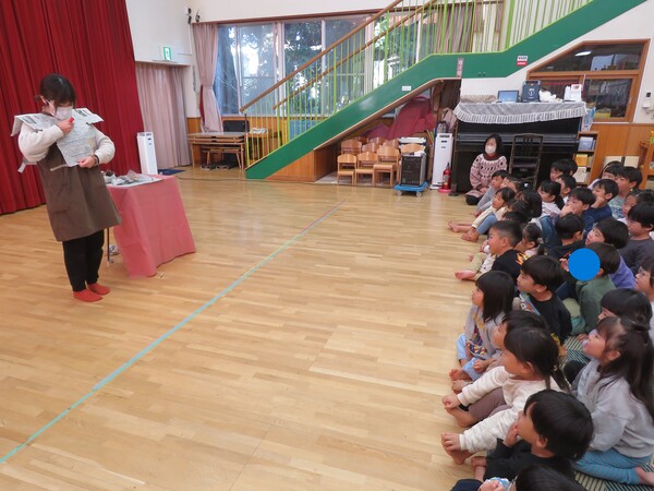 | 12月生まれのおともだち、お誕生日おめでとうございます! ゆめなちゃんの新聞遊び&はーちゃんのミニパネルシアターでおもてなしです。 |