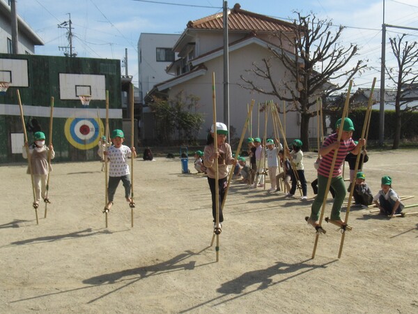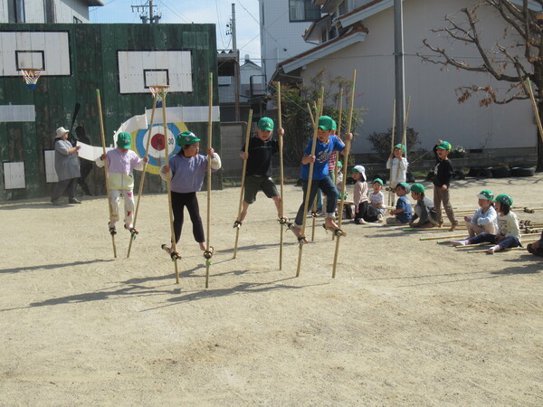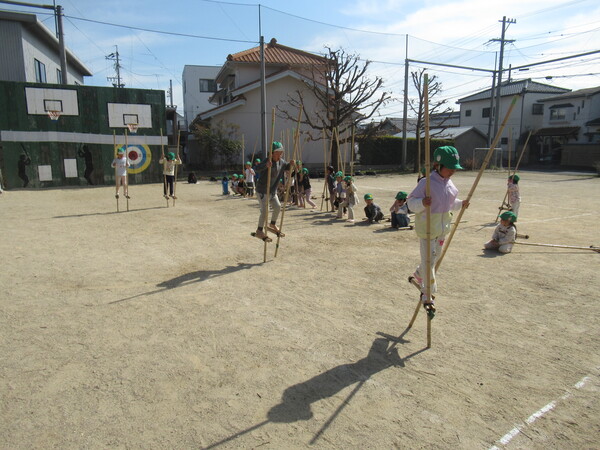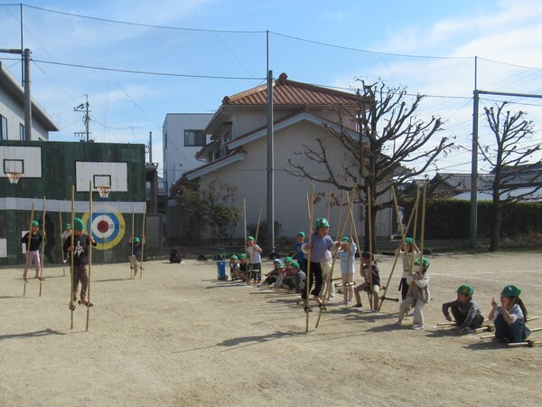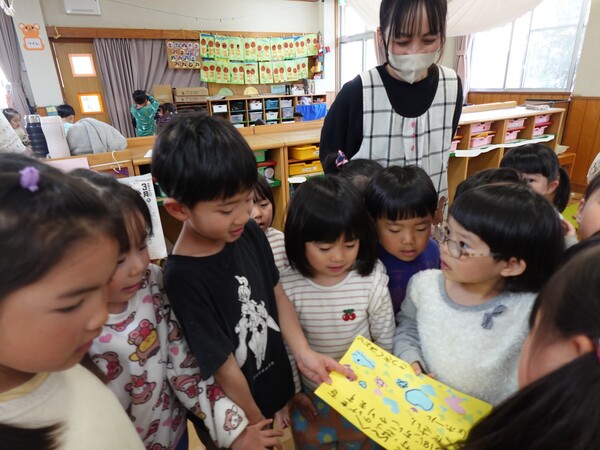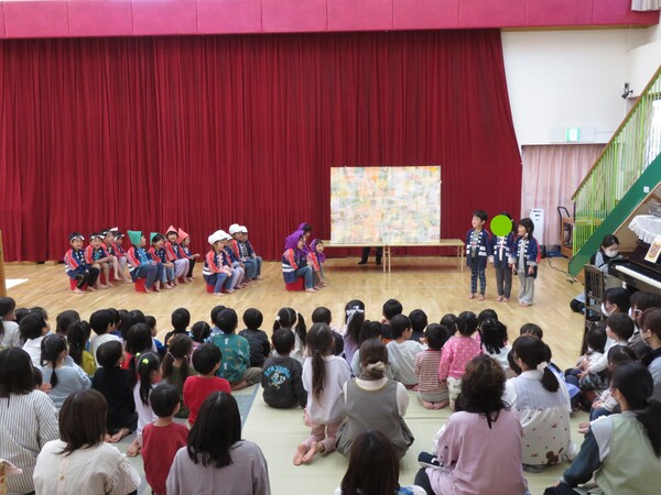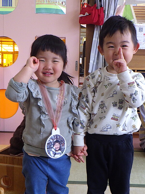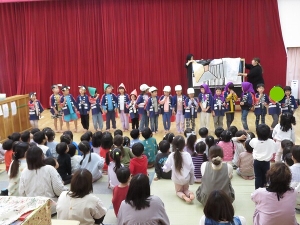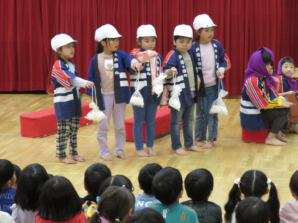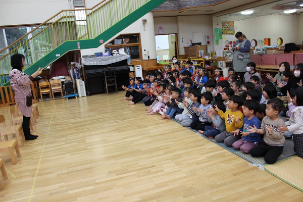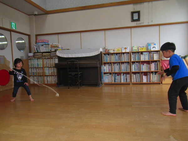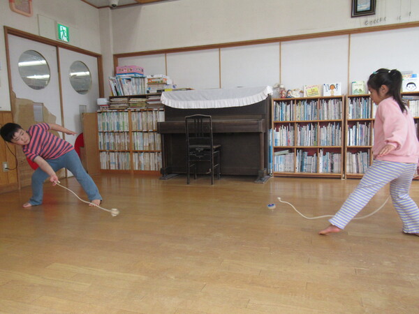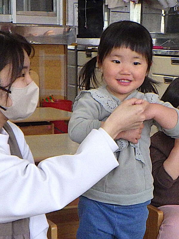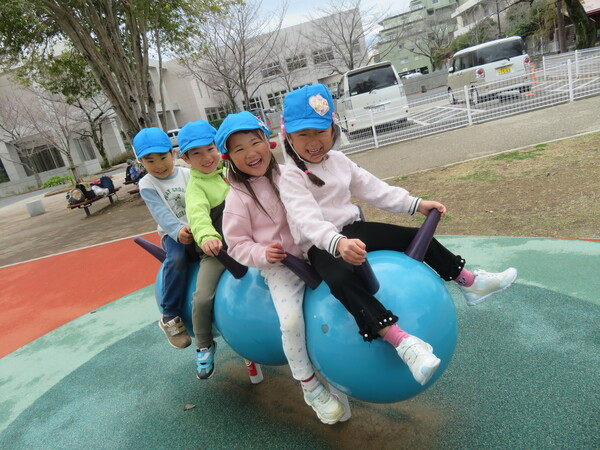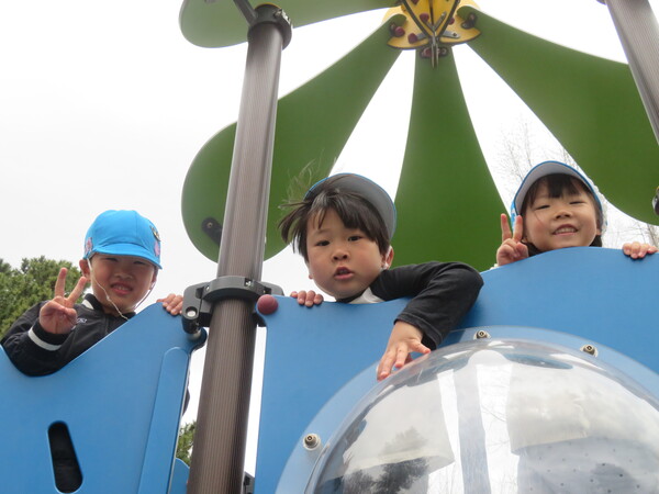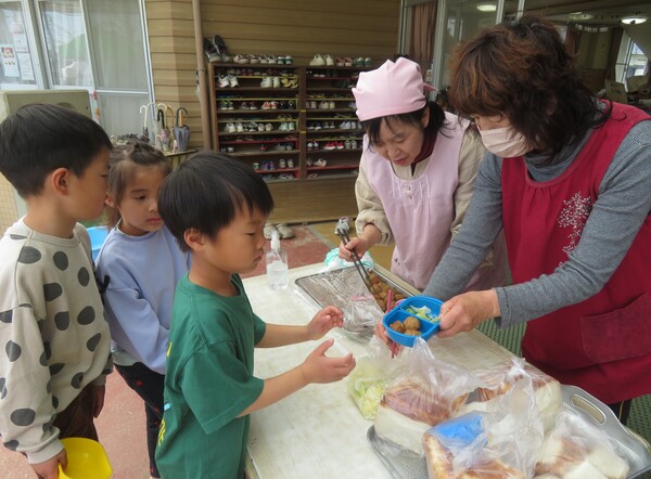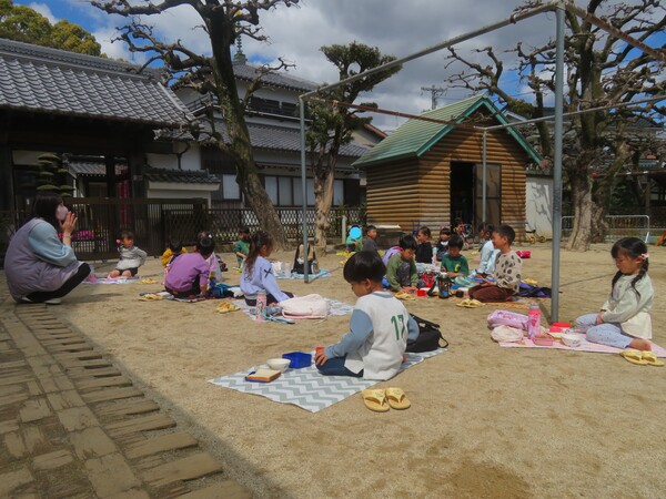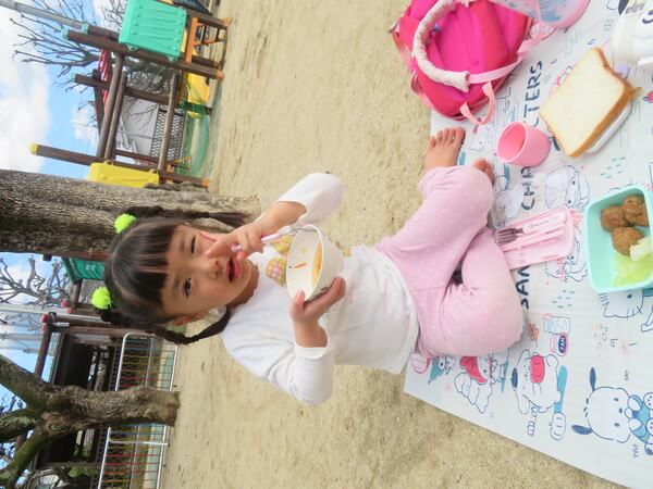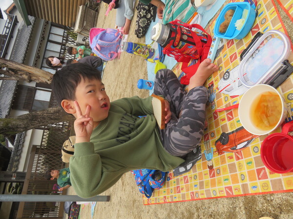 | ふじ組、はじめての「から弁」。 豊川公園まで出かけ、給食を届けてもらい、青空の下で持参した空っぽのお弁当に給食を盛り付けてピクニック気分を!って・・・・予定でしたが・・・前夜から雨が降り・・・出かけてからも雨が降るかもって予報もあったりでどうしよう、どうしよう・・・でも、晴れてきたからGO!って、豊川公園についたら、なんだかもう とっても風が強く、レジャーシートごと子どもたちも給食も吹っ飛ばされそう! というわけで、園に戻ってきて、園庭で「から弁」と相成りましたw でも、ピクニック気分は楽しめました!また行こうね! |