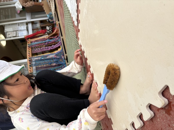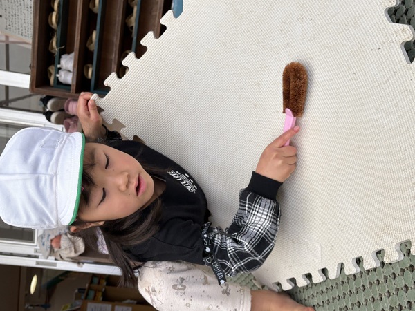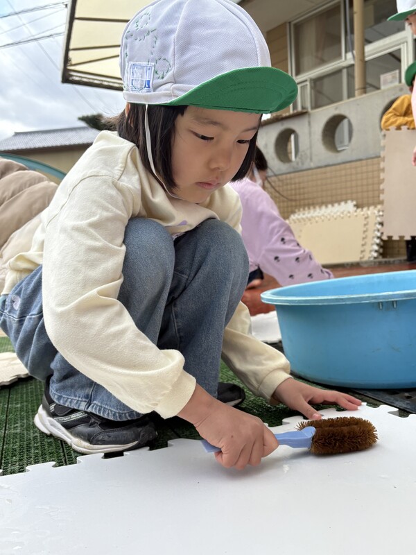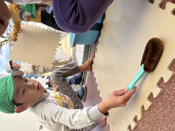 | 今年の汚れは今年のうちに。 マットをはがして、ゴシゴシゴシゴシ! さつき組、がんばる! |