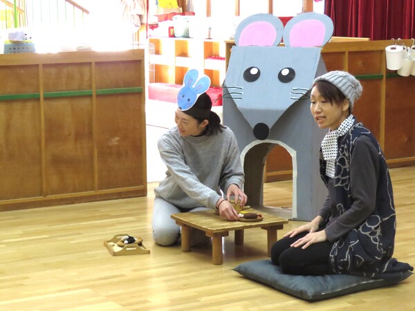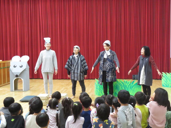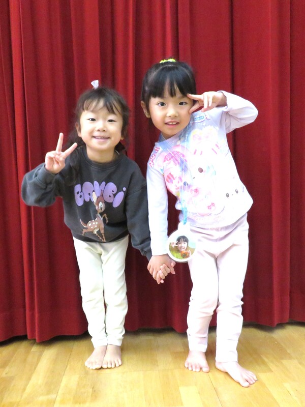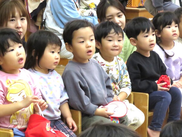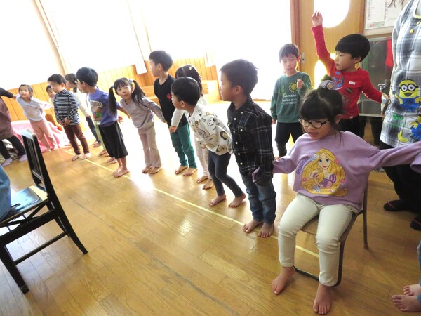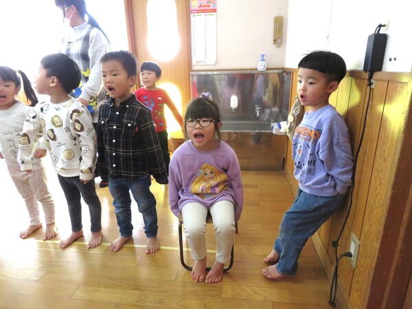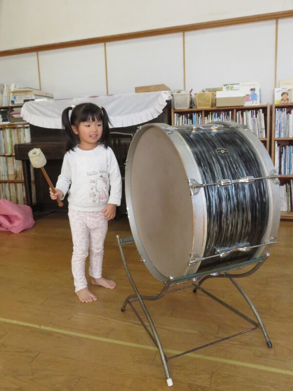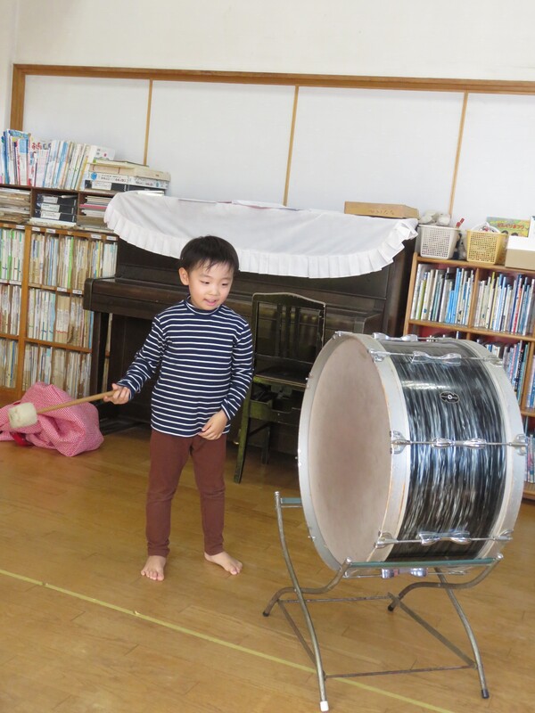 | クラス発表会の練習が始まっている ふじ組。 のぞいてみると・・・手をつないで歌ったり、楽器を演奏したり。 さてさて、楽しんでいる子もいれば、実習生さんに甘えている子もいたり・・・ どんな形になるのか、楽しみですwww |