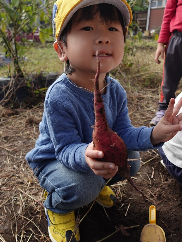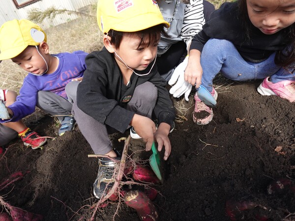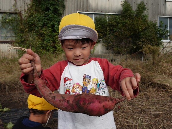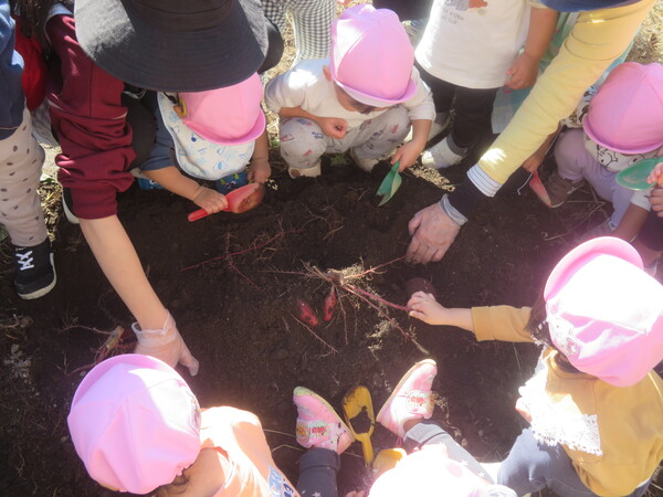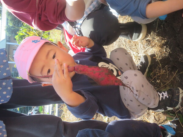 | たんぽぽ組も いもほり体験。 かわいいお芋がたくさん掘れました! |