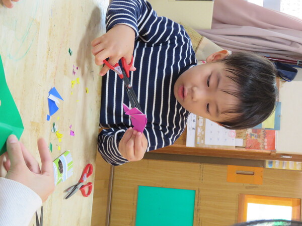 | 先日のさつき組に続き、ふじ組もミニピザ・クッキングを楽しみました。 みんな丁寧に器用に具材をギョーザの皮にのせて、ミニピザを作りました。 やっぱり自分で作ったピザは格別に美味しいね〜 |