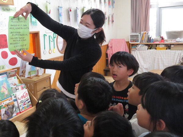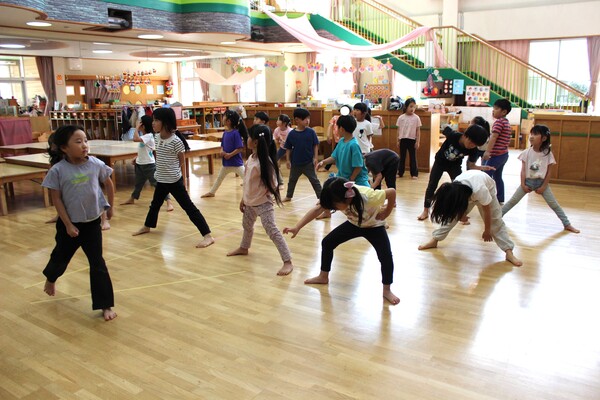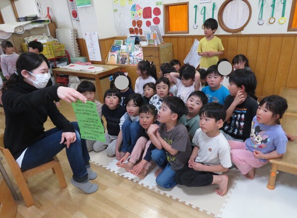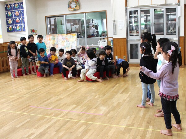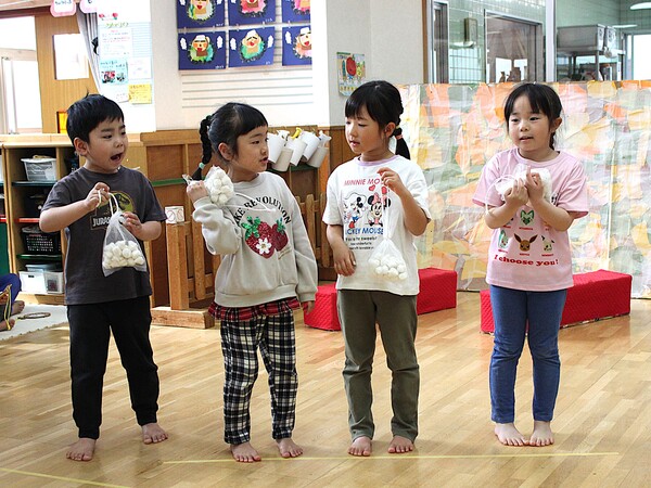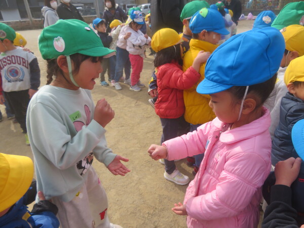 | さつき・ふじ・たんぽぽの3クラスが一緒に遊んだり、グループで食事したり。 今日は、いつも以上に交流を深める「合同保育」の日です。 お世話し、お世話され、遊んで、笑って、疲れたり、楽しんだり。 いつもと違う1日を過ごしたみんななのでした。 |