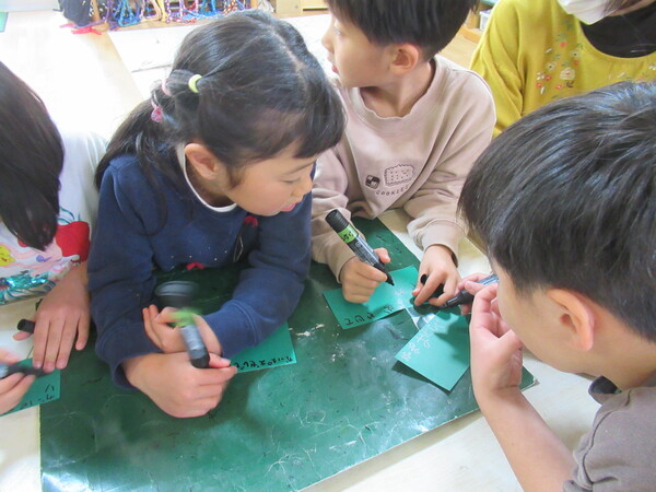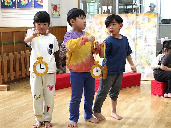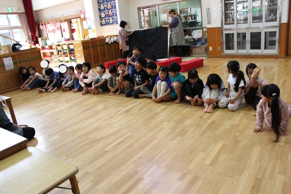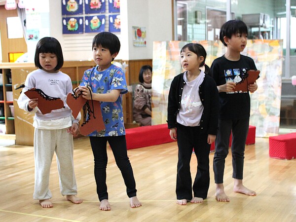 | さつき組、卒園に向けてなかなかのハードスケジュールの中、 飽くなき遊び心から「劇遊び」もしたい!との希望がでていました。 目下、楽しく練習中ですW |