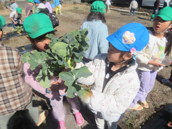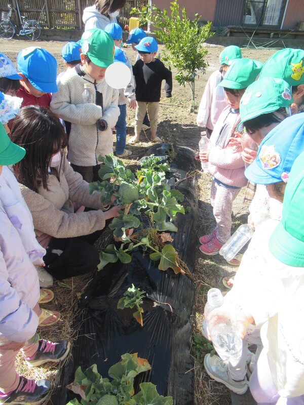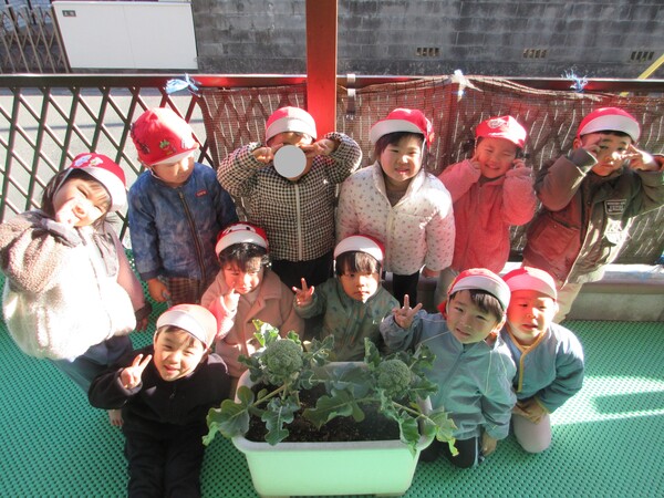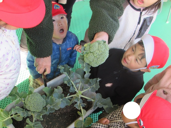 | 保護者のOさんからいただいたブロッコリーの苗。 みんなで畑やプランターに植えたところ、立派に育ち、収穫となりました! |