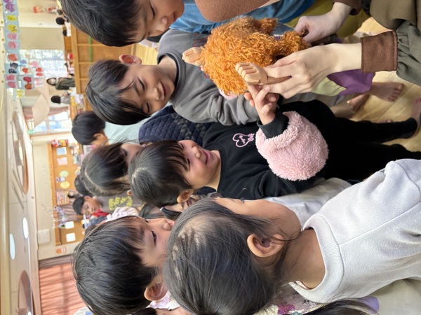 | さつき組のみんなが楽しみにしていた、ひかり保育園の年長児さんのドッヂボール交流会。 小雪の舞う中、かけつけた後輩らの応援を背にうけて、白熱した両園混合の紅白&園対抗戦! ドッヂボールのあとは、鬼ごっこで遊んで、交流を楽しみました。 寒い中、グランドまで来てくれた ひかり保育園のみなさん、ありがとうございました!! |