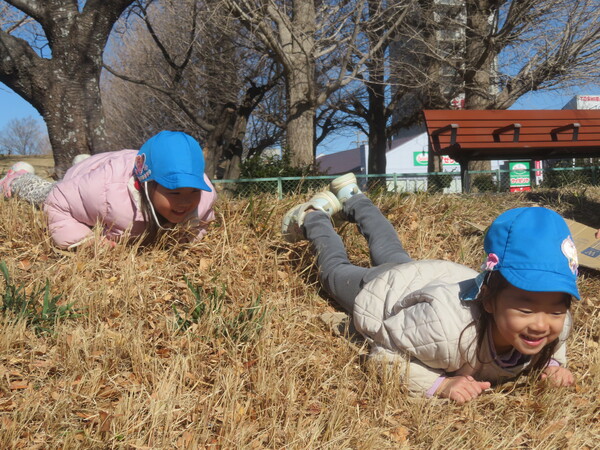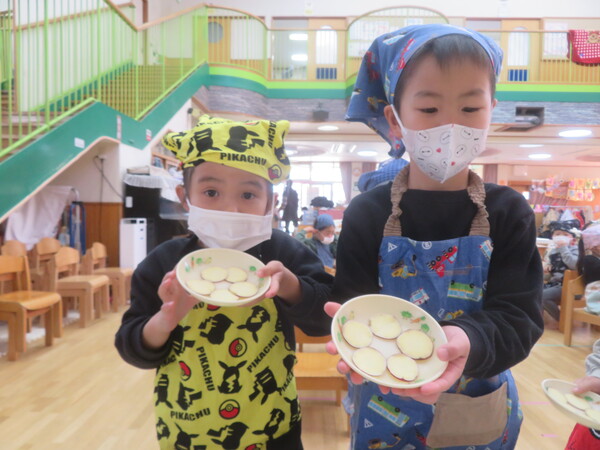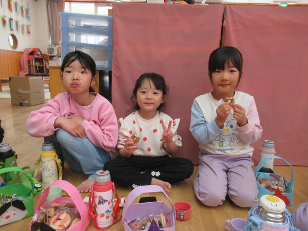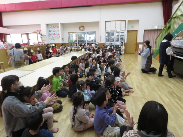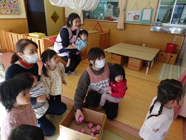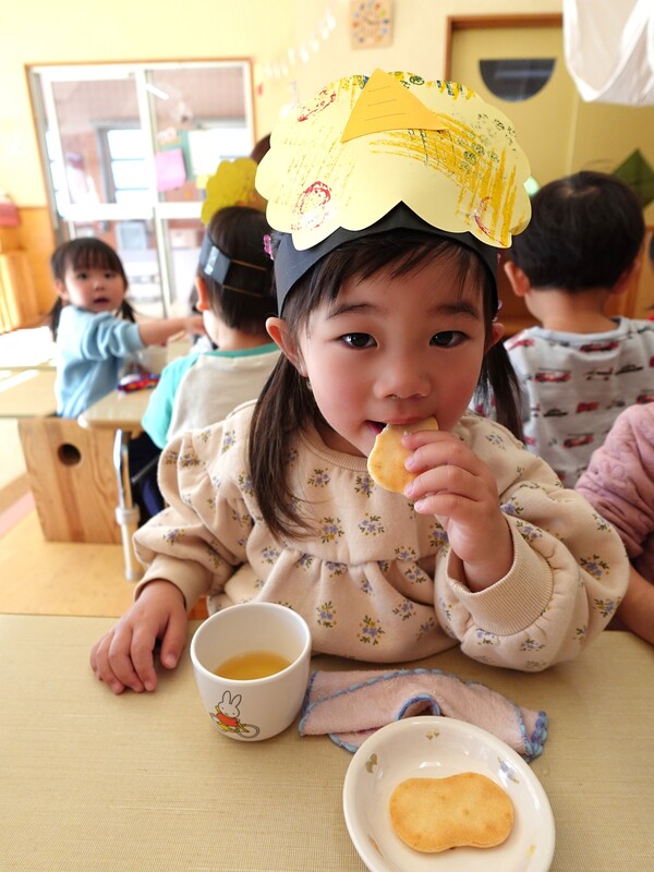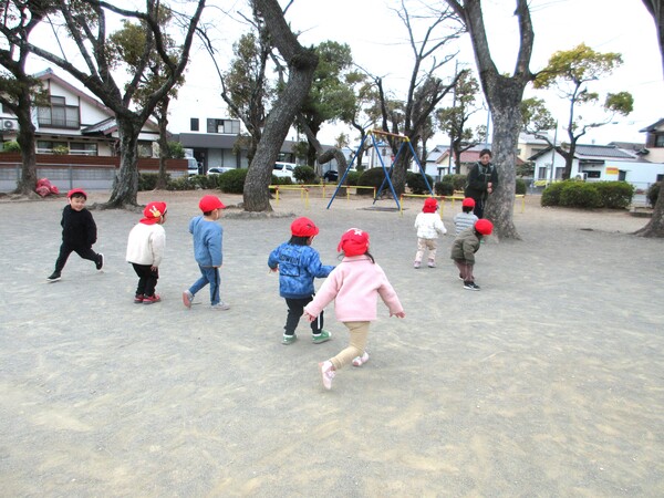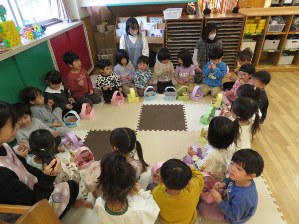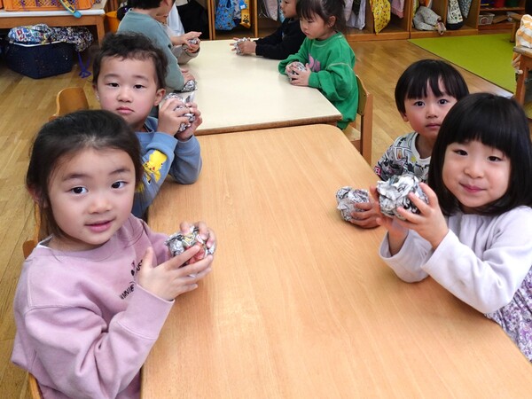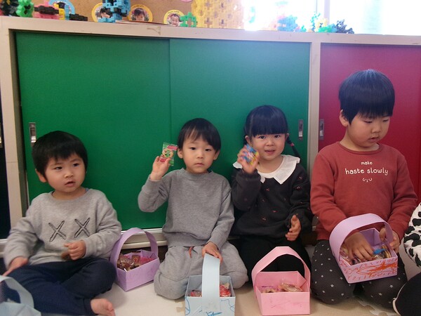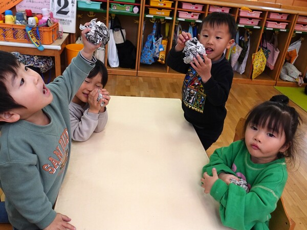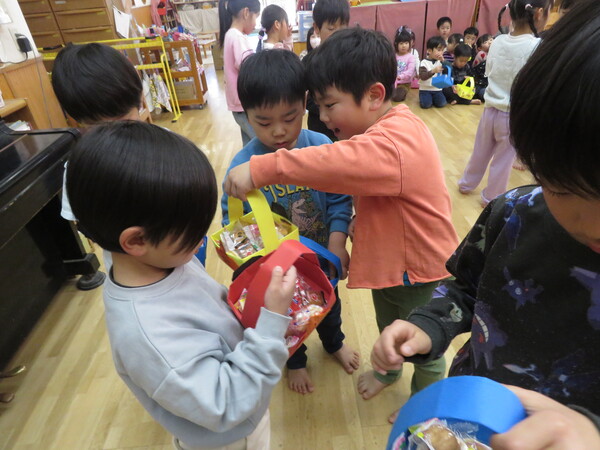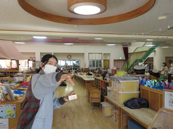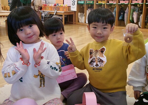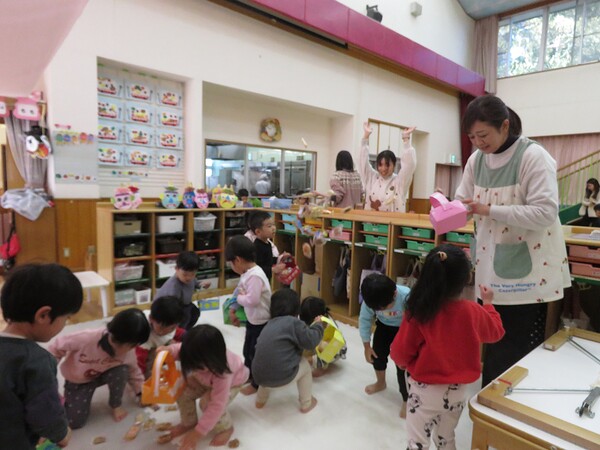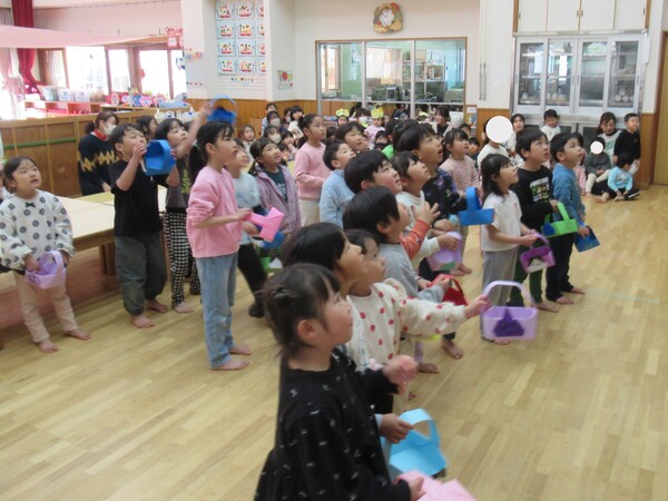 | いよいよ節分。 嫌な予感は的中し、いよいよ赤鬼が大きなこん棒を手にやってきましたぁ! さつき組!年長児として、みんなを守って!・・・って、逃げ足早っ! えええええーー!もも・ちゅうりっぷ組のところまで鬼の侵入をゆるしてしまったぞ! って、それでも逃げ上手のさつき組w おいおい!後輩を守っておくれよぉぉぉぉ と、ふじ&たんぽぽ組から果敢にも赤鬼に挑む剣士あり! 行け!即席「鬼〇隊」たち!なんちゃらの呼吸でナントカントカの技を繰り出すのだぁ! かくして、2度の来訪を退け、平和を取り戻した光輝保育園なのでした・・・ (赤鬼さん、本当にありがとうございました!) |