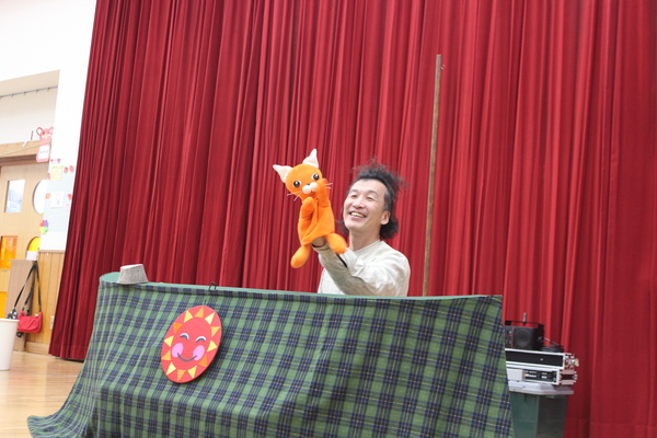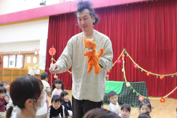 | 可愛いきつねさんがでてきたよ。きつねさんの動きが楽しくて、(笑)のツボにはまる子もいましたよ。 | ||