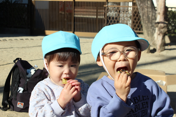 | おいしいね。ねっとり甘ーくなった石焼きいもです。みんなおいしく頂きました。 | ||