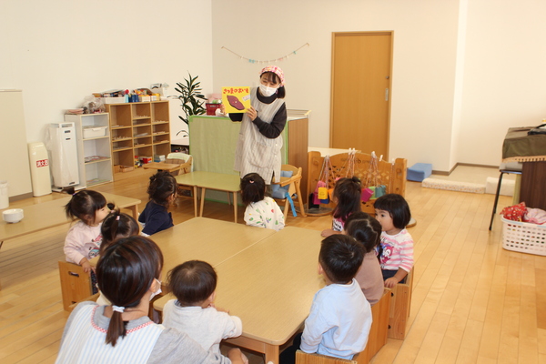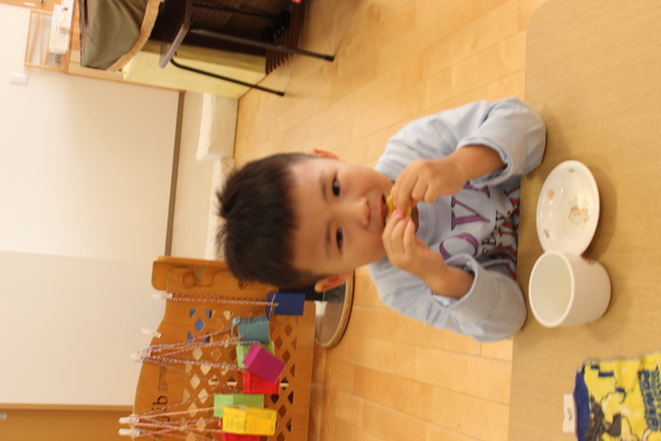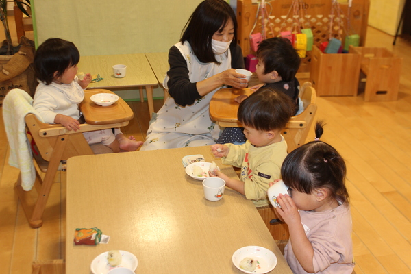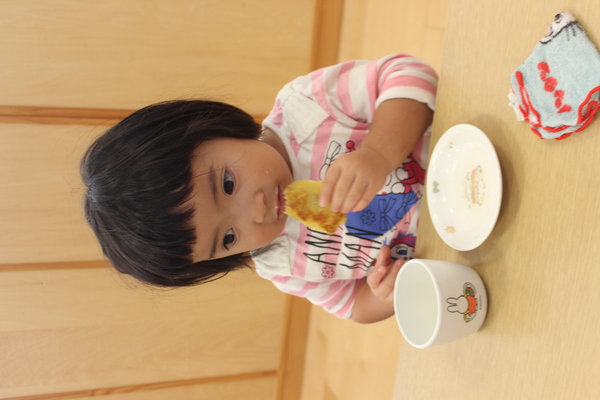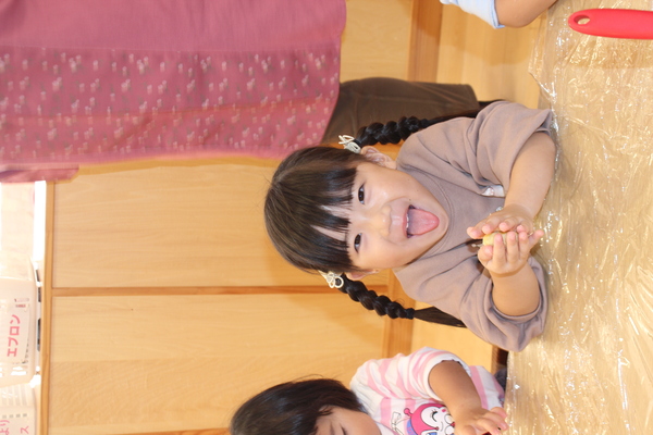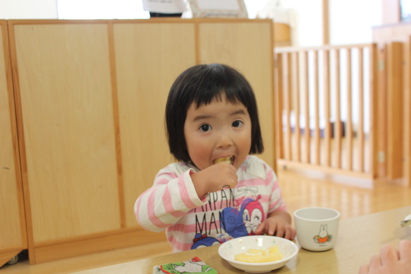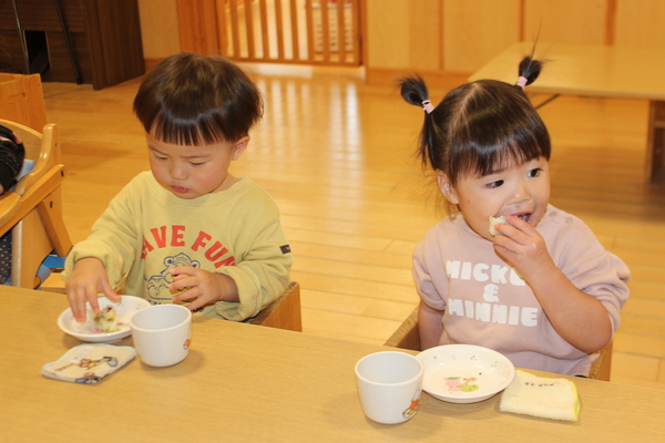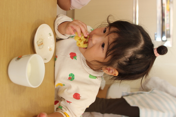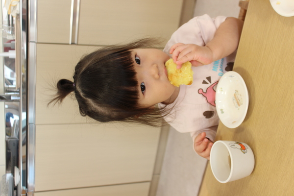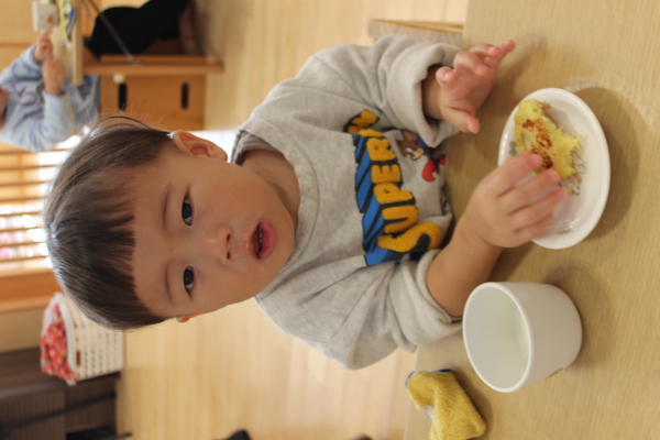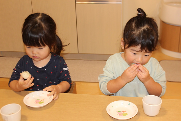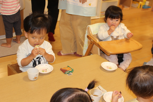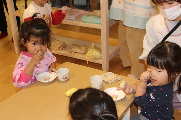 | さて、いもほりで収穫した、さつまいもも残りわずかになってきました。今日はクッキング第3弾!さつまいもの「炊き込みめしでおにぎり🍙」のおやつです。 @やきいもAいももちの次はB🍙です。炊飯器にお米と一緒にさつまいもを丸ごと投入。そして、スイッチオン。なんて簡単なんでしょう。手間いらずのおやつです。炊き上がったら、おいもを崩しながら、まぜまぜ〜。後は握るだけ。ほんのり塩味の効いたお芋ご飯に黒ゴマをまぶして、甘ーくなったさつまいもと相性抜群。パクパクよく食べおかわりもしましたよ。 | ||