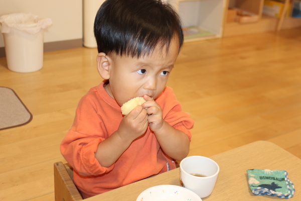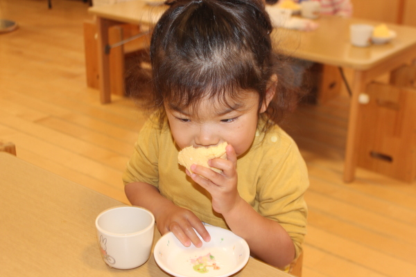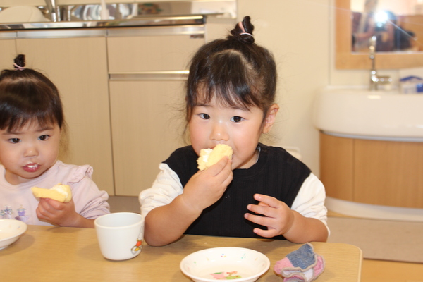 | 今日の給食は、ごはん、北海汁、じゃがいもとベーコン炒め。北海汁には生鮭が入っいます。鮭は下茹でし臭みが抜いてあり、ダシのきいた味噌味でおいしく頂きました。副菜にもじゃがいもが使ってあり、なんだか、北海道を感じるメニューでしたね。 そして、今日は11月17日そう、「いいな、いなりの日」です。市内の保育園では、一斉にいなり寿司が3時のおやつに現れます。 おひさまキラリでも、もちろんおやつはいなり寿司。 |