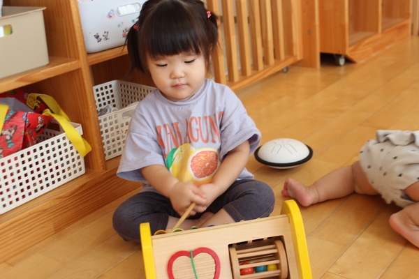 | プールに入れなかった子は室内で思い思いに好きな玩具で楽しんでいます。 | ||